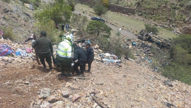 Sebuah bus terperosok ke jurang setelah bertabrakan dengan truk pikap di La Paz, Bolivia. Insiden itu mengakibatkan 25 orang tewas dan 26 orang luka-luka.