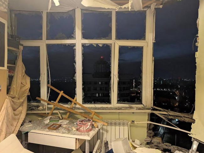 Gubernur wilayah Moskow, Andrei Vorobyov, mengunggah foto apartemen yang hancur dengan kaca jendelanya pecah akibat serangan drone tersebut.