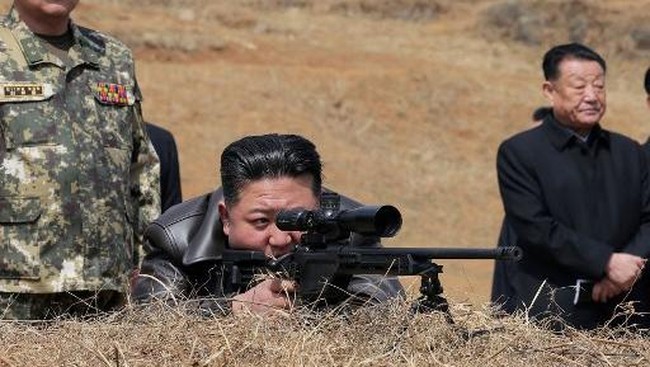 Pemimpin Korea Utara (Korut) Kim Jong Un menguji coba senapan sniper yang baru dikembangkan. Uji coba dilakukan saat dia memeriksa pasukan khusus untuk memperkuat kemampuan perang untuk menjamin kemenangan.