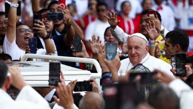 Dilansir Antara, Selasa (3/9/2024), Paus Fransiskus melambaikan tangan dari dalam mobil sepanjang jalan menuju Kedutaan Besar (Kedubes) Vatikan, mulai dari sekitar Bundaran HI, kawasan Patung Kuda, hingga di depan Kedubes Vatikan.