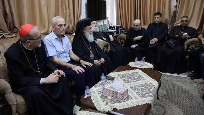 Dalam kunjungan langsung ke Jalur Gaza pada Jumat (18/7), Kardinal Pizzaballa didampingi oleh Theophilos III, Patriark Ortodoks Yunani Yerusalem.