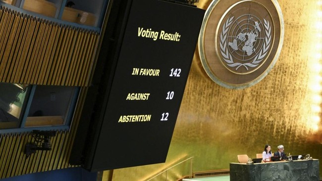 Tel Aviv menyebut voting yang digelar Majelis Umum PBB pada Jumat (12/9) -- dengan hasilnya menunjukkan 142 suara mendukung, sedangkan 10 suara lainnya menentang, termasuk Israel dan sekutu utamanya, Amerika Serikat (AS), dan 12 suara memilih abstain -- sebagai "memalukan".