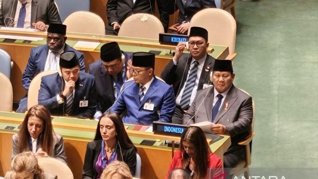 Dilansir Antara, Presiden Prabowo memasuki ruang Sidang Majelis Umum PBB sekitar pukul 15.00 waktu setempat, Selasa (22/9/2025). Prabowo mengenakan setelan jas berwarna abu-abu gelap dan kopiah hitam.