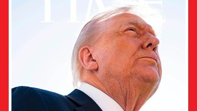 Foto Trump yang dipilih untuk sampul majalah TIME itu diambil dari sudut rendah, yang memperlihatkan bagian leher dan dagu, serta rambut yang tersorot cahaya. Majalah TIME mempostingnya ke akun media sosial X milik mereka pada Senin (13/10) waktu setempat.