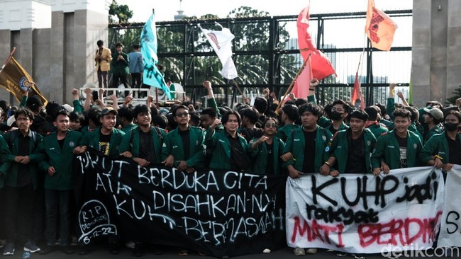 Simak juga 'Aksi Tabur Bunga Tutup Demo Mahasiswa Kritisi KUHP':