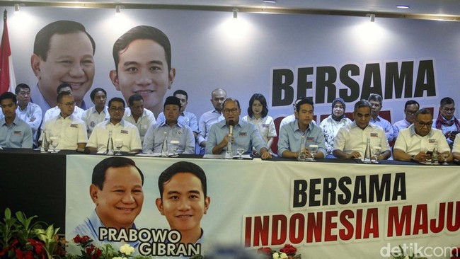 Adapun Koalisi Indonesia Maju terdiri dari Partai Gerindra, Partai Golkar, Partai Amanat Nasional (PAN), Partai Demokrat, Partai Bulan Bintang (PBB), Partai Solidaritas Indonesia (PSI), Partai Garuda, dan Partai Gelora yang secara aklamasi sepakat mengusung Gibran sebagai Cawapres Prabowo untuk meneruskan keberhasilan pemerintahan Jokowi yang dianggap sukses dalam sembilan tahun terakhir.