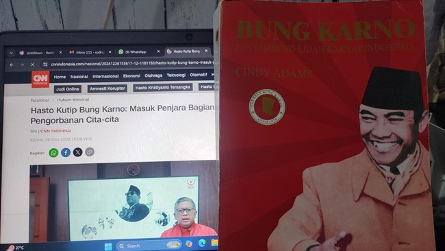 Kembali ke buku "Bung Karno Penyambung Lidah Rakyat" karya Cindy Adams, khususnya Bab 9 yang disebut Hasto. Di halaman 109-114 bab tersebut ternyata tak mengisahkan Bung Karno ditangkap dan dikirim ke Penjara Banceuy karena tuduhan menyuap aparat. Bukan karena memerintahkan kawannya yang ingin menjadi politisi meski raihan suara tak mencukupi untuk kabur dan bersembunyi. Juga tidak memerintahkan agar HP direndam untuk menghilangkan barang bukti. Sama sekali tidak!