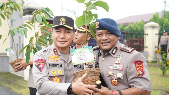 Kapolda Riau Irjen Herry Heryawan yang menginisiasi gerakan ini melakukan penanaman pohon seusai menggelar apel pasukan dan halal bihalal Idulfitri 1446 H/2025 di lapangan Mapolda Riau, Jalan Pattimura, Kecamatan Sail, Pekanbaru, Selasa (8/4/2025).