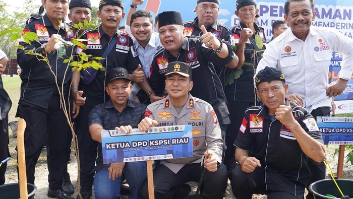 Peringatan buruh dengan tema May Day is Collaboration Day di Pekanbaru, Riau, ini dihiasi dengan aksi penanaman pohon hingga panggung hiburan. Penanaman pohon ini sejalan dengan jargon Polda Riau 'Melindungi Tuah Menjaga Marwah'.