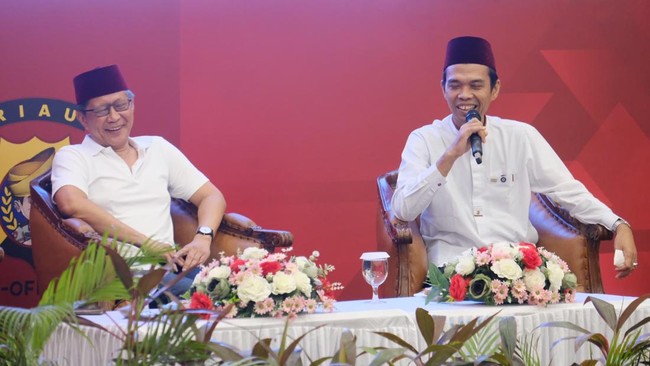 Polda Riau menggelar kajian subuh bertema 'Alam dan Kita dalam Perspektif Agama dan Sains'. Kajian tersebut menghadirkan Ustaz Abdul Somad (UAS) dan Rocky Gerung sebagai narasumber yang memaparkan soal alam dari sisi agama dan sains.