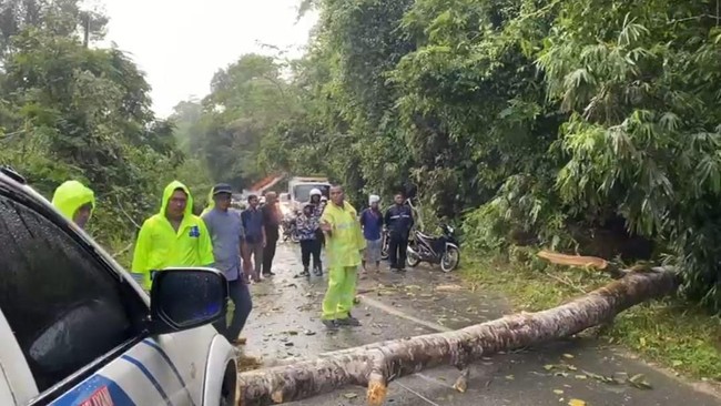 Insiden pohon tumbang terjadi sekitar pukul 08.30 WIB pagi tadi. Pohon yang cukup besar tiba-tiba tumbang hingga menutup Jalan Lintas Petapahan-Bangkinang, tepatnya di dekat Hutang Lindung Kecamatan Bangkinang.