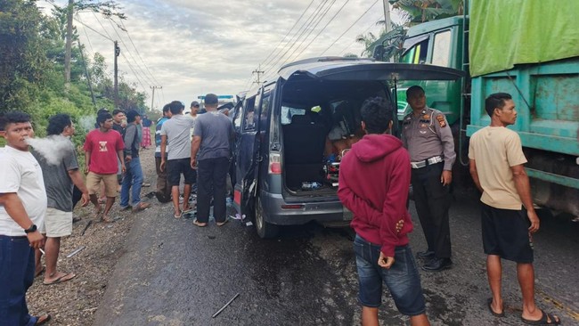 Di saat bersamaan, mobil ambulans Daihatsu Luxio bernopol BM-7052-BL datang dari arah berlawanan. Kecelakaan pun tak terhindarkan.