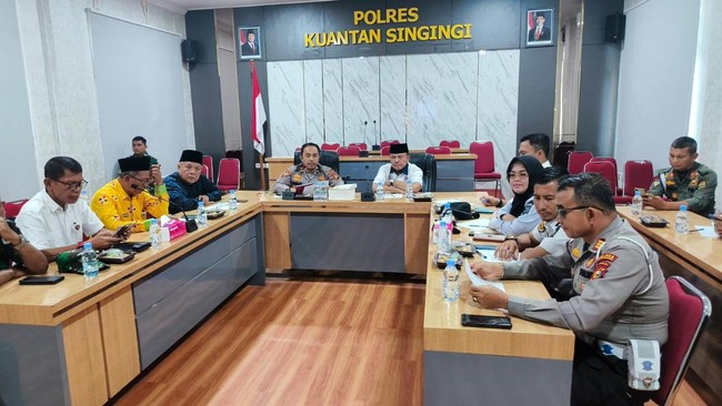 Polres Kuantan Singingi (Kuansing) menggelar rapat koordinasi lintas sektoral menjelang Hari Raya Idul Adha 1446 H/2025 M. Selain masjid yang menyelenggarakan salat Ied, polisi juga akan melakukan pengamanan di jalur pawai obor.