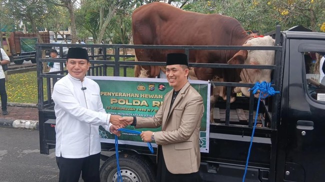 Hewan kurban tersebut langsung didistribusikan kepada masyarakat setempat melalui polres-polres jajaran. Kapolda Riau Irjen Herry Heryawan didampingi Wakapolda Brigjen Jossy Kusumo melepas langsung pendistribusian hewan kurban tersebut melalui pengurus masjid, pada Jumat (6/6/2025) pagi tadi.