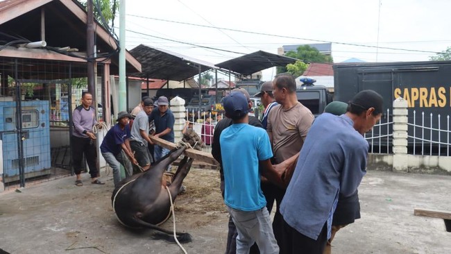Polres Dumai, Riau, turut merayakan Idul Adha 1446 Hijriah dengan memotong 21 hewan kurban. Daging kurban tersebut disalurkan kepada personel polisi dan masyarakat.