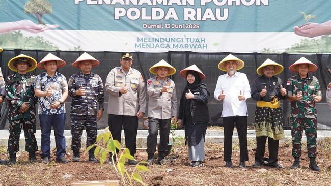 Kegiatan penanaman pohon digelar di Pondok Pesantren Al Bahjah, Jalam Gatot Subroto, Kelurahan Mekar Sari, Kecamatan Dumai Selatan, Kota Dumai, pada Jumat (13/6/2025). Kapolda hadir ditemani sejumlah pejabat utama (PJU) Polda Riau.