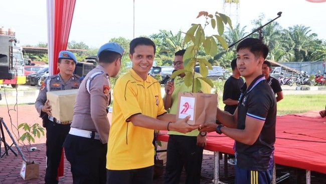 Pada kesempatan ini, AKBP Emil turut memberikan hadiah bibit pohon kepada Forkopimda Rokan Hulu sebagai bentuk dukungan terhadap siaga penanggulangan karhutla di Rokan Hulu.