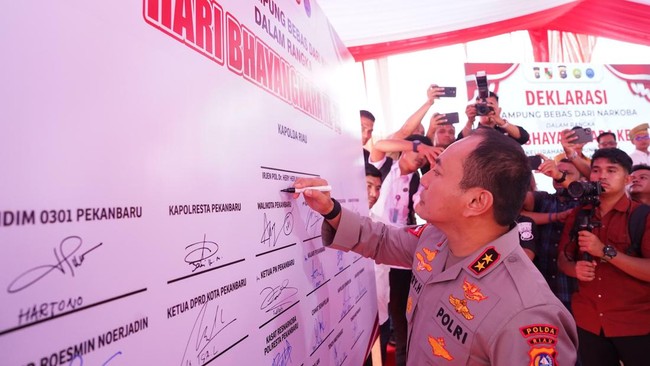 Polda Riau membuat gerakan kolaboratif bersama Pemerintah Provinsi dan Kabupaten serta masyarakat dalam upaya pencegahan dan penanganan narkotika. Sebanyak 79 desa di 12 kota dan kabupaten se-Provinsi Riau mendeklarasikan 'Kampung Bebas Narkoba'.