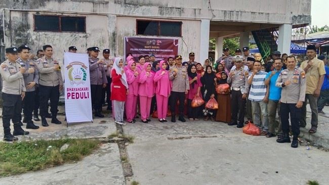 Menyambut Hari Bhayangkara ke-79, polisi di Kota Pekanbaru, Riau, berbagi kebaikan kepada warga. Polisi melakukan bersih-bersih di masjid hingga membagikan sembako kepada warga.