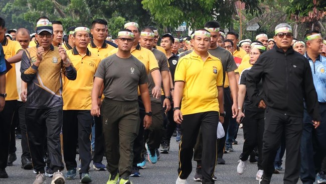 Kepolisian Daerah (Polda) Riau melaksanakan olahraga bersama pada pagi hari ini dalam rangkaian peringatan Hari Bhayangkara ke-79. Momentum ini diharapkan menumbuhkan semangat kebersamaan dan kolaborasi untuk membangun Polda Riau yang lebih baik lagi.