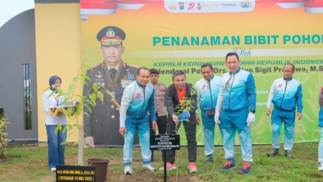 Jenderal Sigit ditemani oleh Kapolda Riau Irjen Herry Heryawan dan Gubernur Riau Abdul Wahid saat melakukan penanaman pohon tersebut.