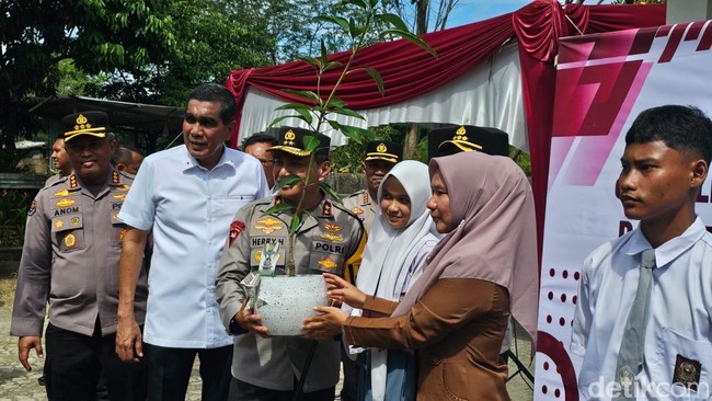 "Seperti kita tahu anak SMK sekarang kan kepeduliannya kurang. Dengan datangnya Pak Kapolda itu sangat membantu, semoga dengan kedatangan Pak Kapolda anak-anak tergerak untuk menanam pohon," imbuhnya.