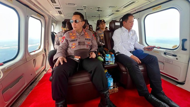 Ada tiga helikopter yang membawa Kapolri beserta rombongan. Jenderal Sigit sendiri berada di heli didampingi oleh Dankorbrimob Komjen Imam Widodo, Astamaops Komjen Akhmad Wiyagus, Kabaharkam Polri Komjen Fadil Imran, Kapolda Riau Irjen Herry Heryawan, Gubernur Abdul Wahid, epala Pelaksana BPBD Riau M Edy Afrizal dan Dirkrimum Polda Riau Kombes Asep Darmawan.