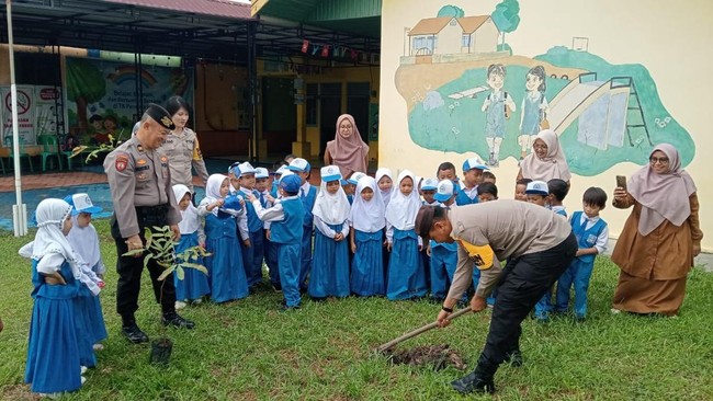 Kegiatan ini digelar Polsek Dumai, Senin (11/8/2025), sebagai bagian dari program Green Policing Polda Riau yang bertujuan menanamkan kesadaran lingkungan pada generasi penerus bangsa.