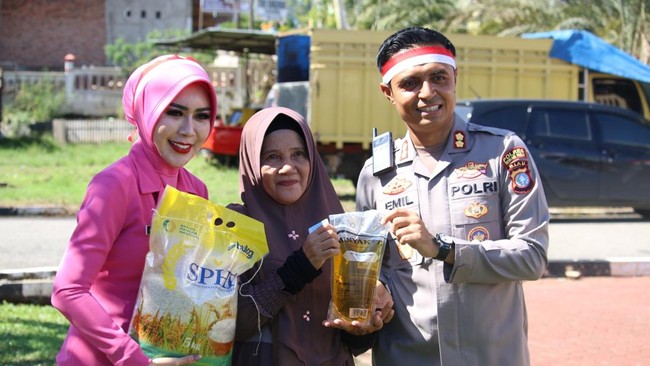 Dalam kegiatan ini, Polres Rohul juga turut membagikan bendera Merah Putih kepada warga dalam rangka menyambut Hari Kemerdekaan ke-80 Republik Indonesia.