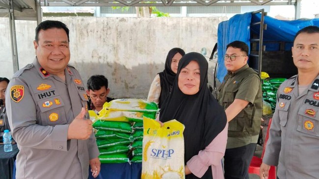 Kapolsek Binawidya, Kompol Ihut Manjalo Tua, mengatakan pihaknya menyediakan 2 ton beras tadi pagi. Namun, warga hanya diperbolehkan membeli maksimal 2 karung atau 10 kilogram beras.