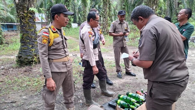 Petugas gabungan menggerebek kafe remang-remang yang berada di lokalisasi sawitan, di Desa Pesaguan, Kecamatan Pangkalan Lesung, Kabupaten Pelalawan. Sejumlah minuman keras (miras) hingga peralatan hiburan di lokasi disita petugas.