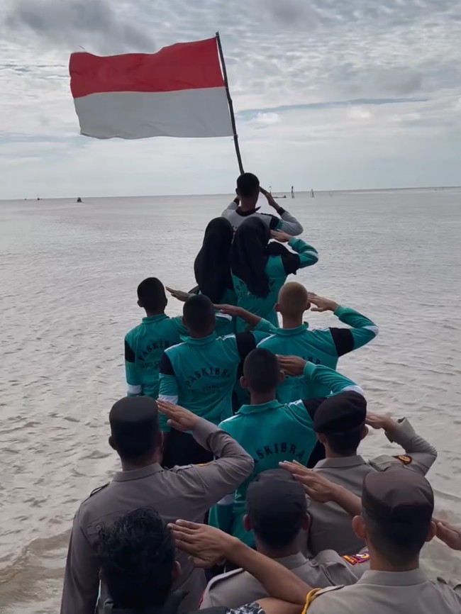Kolaborasi polisi dengan siswa SMA anggota Paskibra ini tak hanya menunjukkan sinergi aparat dan generasi muda, tetapi juga menegaskan semangat nasionalisme yang tak pernah padam, bahkan di atas perairan.