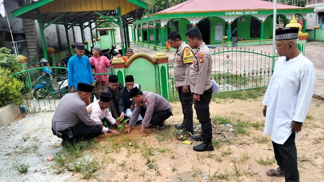"Satu pohon yang kita tanam hari ini bisa memberikan manfaat oksigen, mencegah banjir, dan menciptakan lingkungan yang sejuk serta asri di masa depan," jelas Aiptu Suardi. Ia juga mengajak para jemaah untuk merawat pohon yang sudah ditanam.