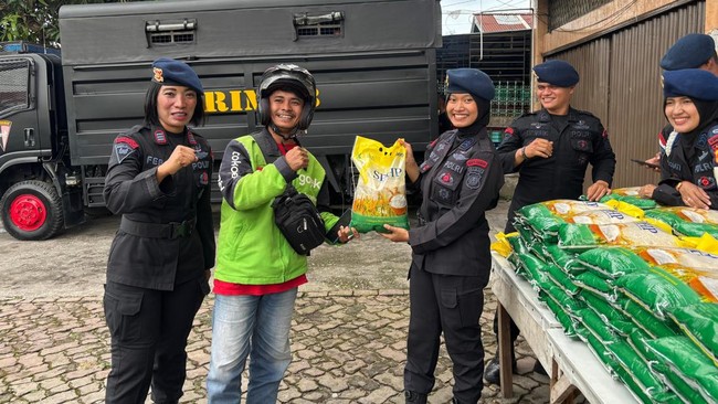 Gerakan pangan dipimpin oleh Polwan yang menjabat sebagai Kasubbagdalops Bagops Satuan Brimob Polda Riau AKP Febriyanti, dilaksanakan di Jalan Sungai Rokan Tanjung Rhu Kecamatan Limapuluh, Kota Pekanbaru, Sabtu (30/8/2025).