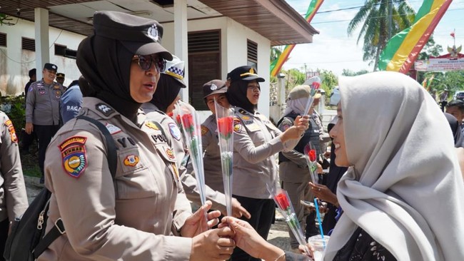 Polres Rokan Hulu (Rohul), Riau, melakukan aksi simpatik untuk menebarkan pesan damai kepada masyarakat. Polisi membagi-bagikan bunga mawar merah sebagai simbol cinta dan kasih sayang, sekaligus mengajak seluruh elemen masyarakat untuk menjaga persatuan dan kerukunan.