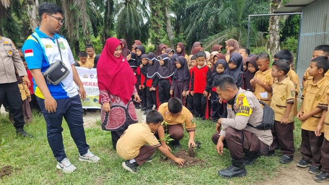 Polsek Medang Kampai, Polres Dumai, menunjukkan komitmennya terhadap pelestarian lingkungan dengan menggelar kegiatan penanaman pohon dan sosialisasi program Green Policing di SDN 004 Mundam. Kegiatan ini bertujuan untuk menanamkan kesadaran ekologis sejak dini pada generasi muda.