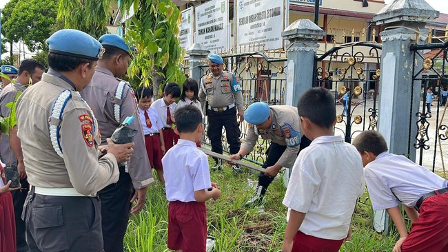 Polres Dumai kembali menunjukkan komitmennya dalam upaya pelestarian lingkungan dan mendukung program Green Policing. Kali ini, Provos turun ke SD Estomihi, Jalan Sultan Syarif Kasim, Kecamatan Dumai Timur, Kota Dumai, menanam pohon bareng siswa.