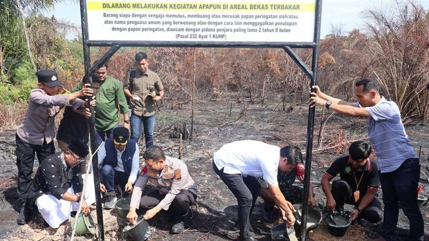Kapolres Pelalawan AKBP John Louis Letedara dan Bupati H Zukri Misran memimpin langsung pemasangan plang tersebut, pada Jumat (3/10/2025). AKBP John mengatakan kegiatan ini merupakan tindak lanjut arahan Kapolda Riau Irjen Herry Heryawan yang bertujuan memulihkan lahan bekas karhutla.