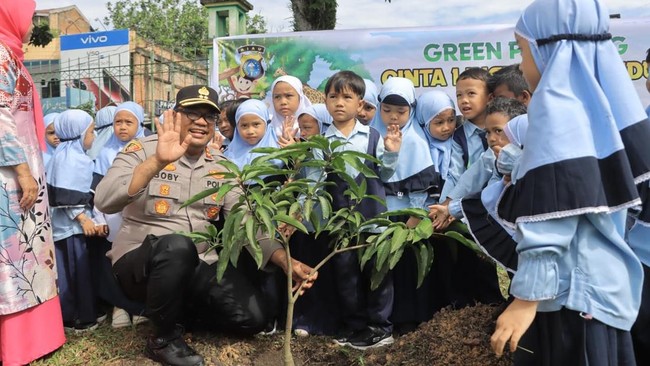 Kapolres Kampar AKBP Boby Putra Ramadhan Sebayang turun ke TK Pertiwi Bangkinang Kota untuk mengkampanyekan Green Policing. Anak-anak Gen Alpha ini ditanamkan kecintaan lingkungan sejak dini dengan menanam pohon.