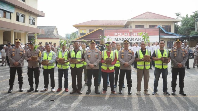 Selain itu, Aiptu Azwar Anas, Bhabinkamtibmas Kelurahan Labuh Baru Barat Polsek Payung Sekaki, menerima piagam penghargaan dan bibit pohon atas dedikasinya dalam pembangunan Dapur SPPG (Satuan Pelayanan Pemenuhan Gizi), fasilitas terpusat untuk produksi Makan Bergizi Gratis (MBG) di wilayah hukum Polresta Pekanbaru.