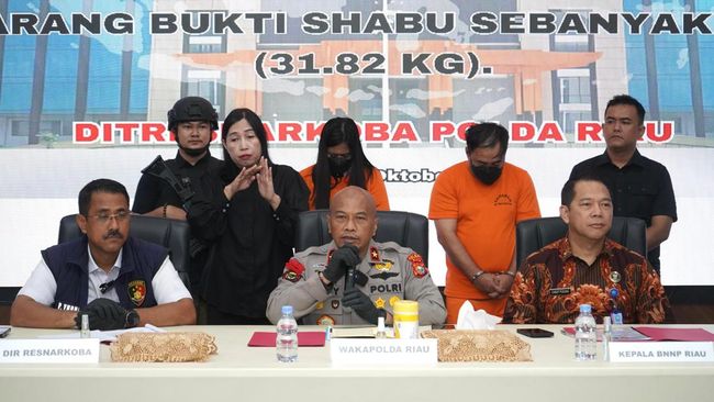 Upaya peredaran narkotika jenis sabu seberat 31,82 kilogram di Pelabuhan Roro, Dumai berhasil dicegah aparat TNI-Polri. Dua orang tersangka dijerat dalam kasus ini.