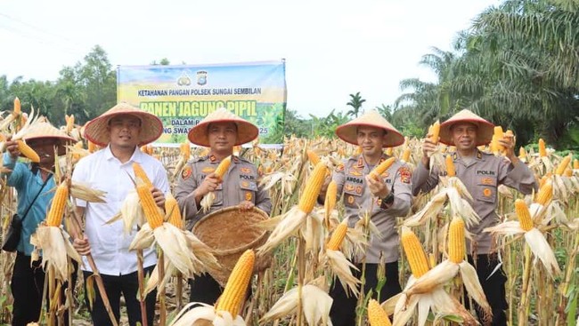 Polres Dumai bersama Polsek Sungai Sembilan sukses menggelar panen jagung pipil perdana Kuartal IV di Jalan Sungai Paul, RT 001, Kelurahan Lubuk Gaung, Kecamatan Sungai Sembilan, Kota Dumai, Sabtu (25/10/2025). Kegiatan ini merupakan bagian dari implementasi program Gugus Tugas Polri dalam mendukung ketahanan pangan dan swasembada pangan tahun 2025.