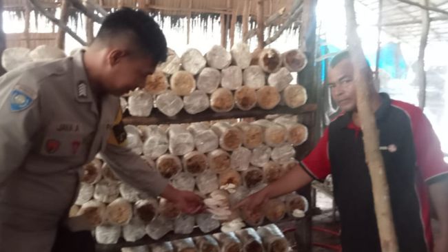 Sementara itu, Bhabinkamtibmas Kelurahan Mundam, Aipda Jaka Andriadi mendampingi budidaya jamur milik Bapak Baurs di Jalan Arifin Ahmad RT 004. Di lahan seluas 20x30 meter, Bapak Barus telah berhasil mengembangkan budidaya jamur yang cukup menjanjikan.