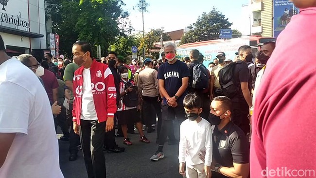 Diberitakan sebelumnya, Jokowi berjalan-jalan di CFD, Jalan Slamet Riyadi, Solo. Ganjar Pranowo tampak menemani dan beberapa kali terlihat berbincang serius.