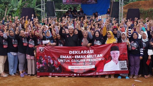 "Alhamdulillah kegiatan pagi ini berjalan dengan lancar, walaupun cuaca kurang mendukung. Namun tidak membuat masyarakat pantang untuk hadir mendeklarasikan dukungannya untuk Pak Ganjar Pranowo di 2024," kata Kamila dalam keterangan tertulis, Senin (15/8/2022).