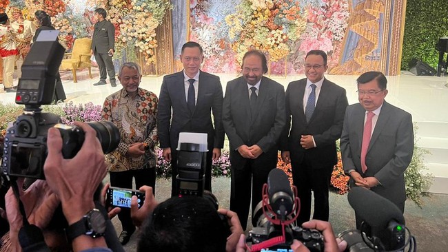 Sebelumnya, AHY, Surya Paloh, Ahmad Syaikhu, Jusuf Kalla, dan Anies Baswedan bertemu di acara pernikahan anak politikus NasDem Sugeng Suparwoto. Politikus Andi Arief menyinggung soal doa yang diterima oleh langit.
