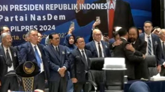 Momen itu terjadi usai Anies menyampaikan sambutannya di NasDem Tower, Cikini, Jakarta Pusat, Senin (3/10/2022). Untuk diketahui, NasDem resmi mendeklarasikan Anies menjadi capres yang diusungnya di Pilpres 2024.