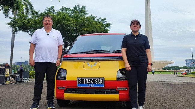 Airlangga dan Puan langsung menaiki mobil listrik berwarna kuning-merah dengan tulisan G24 di bagian belakangnya itu. Mereka berkeliling kawasan Monas menggunakan mobil listrik. Usai berkeliling, Airlangga kemudian menyerahkan kunci mobil listrik itu kepada Puan.