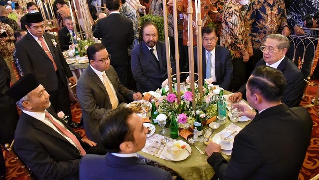 Pertemuan itu terjadi dalam resepsi pernikahan putri Ketua Majelis Syuro PKS Salim Segaf Aljufri, Sumayyah Aljufri, di Balai Sudirman, Jakarta, Minggu (16/10/2022). Mereka yang bertemu adalah Anies Baswedan, Ketua Umum Partai Demokrat Agus Harimurti Yudhoyono (AHY), Ketua Umum Partai NasDem Surya Paloh, Presiden PKS Ahmad Syaikhu, Susilo Bambang Yudhoyono atau SBY hingga Jusuf Kalla.