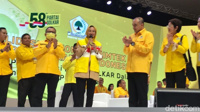Pengukuhan Wanda Hamidah sebagai kader Partai Golkar dalam acara "Konsolidasi Nasional dan Bimtek Fraksi Partai Golkar se-Indonesia" yang bertempat di Hall C, Jiexpo Kemayoran, Jakarta Pusat, Kamis (20/10/202). Wanda Hamidah naik ke panggung acara Golkar.